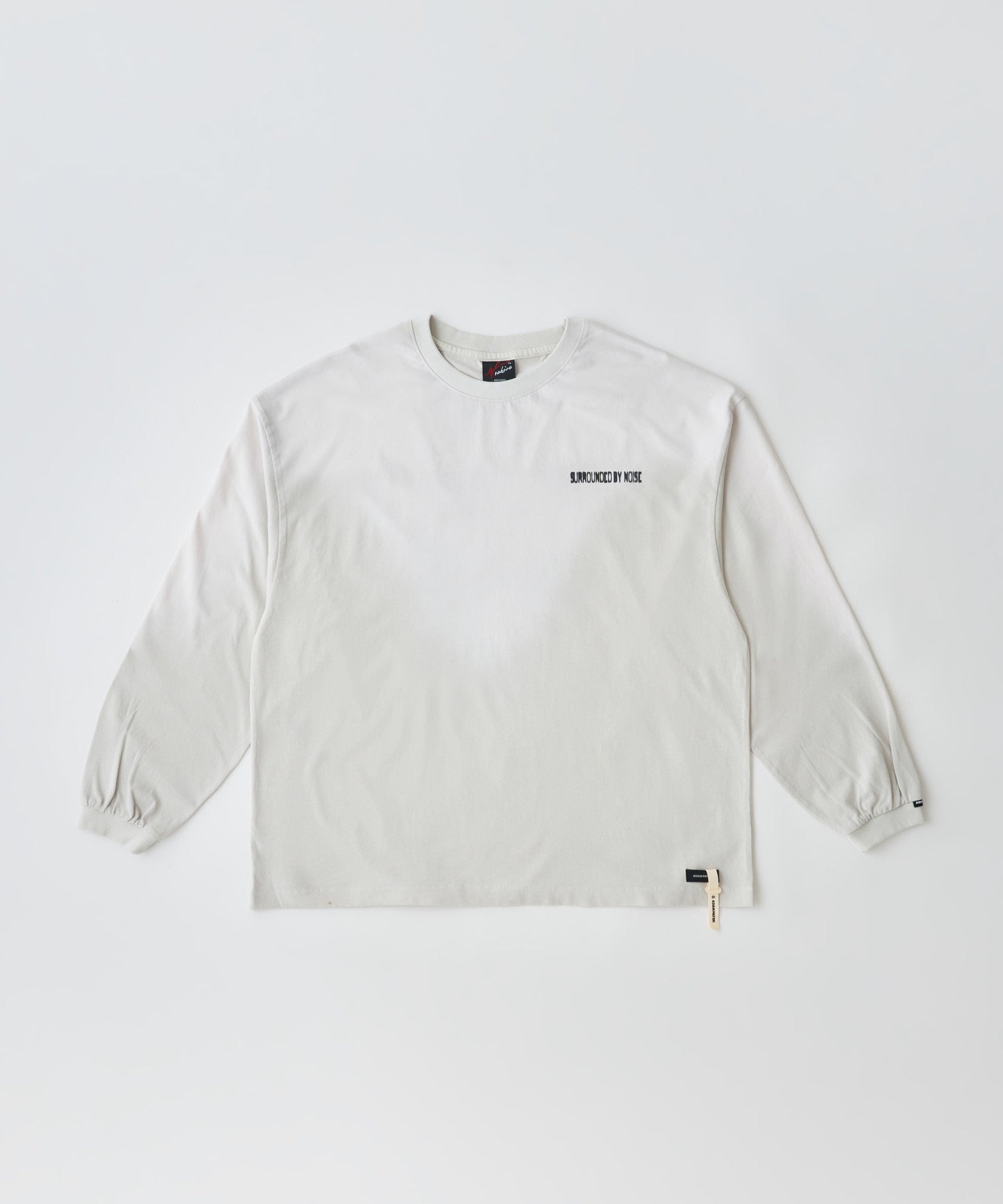 フロントには “surrounded by noise” のメッセージを配置し、静かな違和感と問いを添えたデザインに。